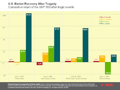 After a decline, the market usually changes direction abruptly and the bounce is usually quick and quite significant as the chart below indicates that the time to a full recovery is short in duration.